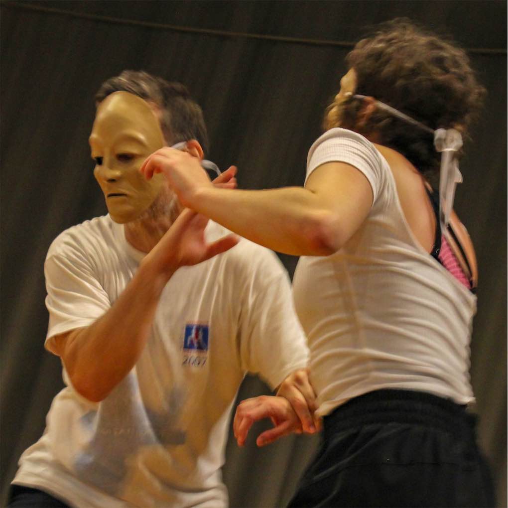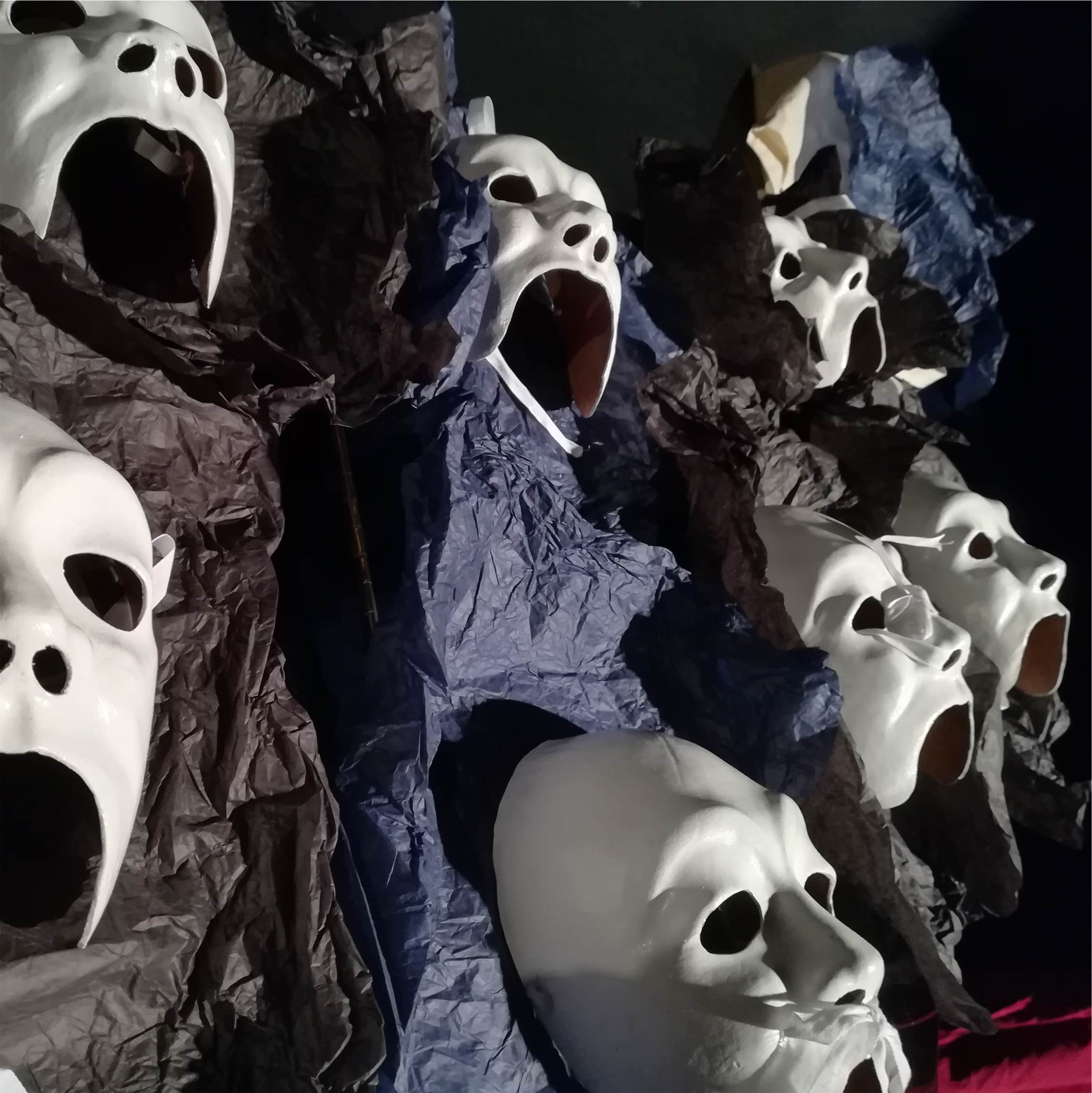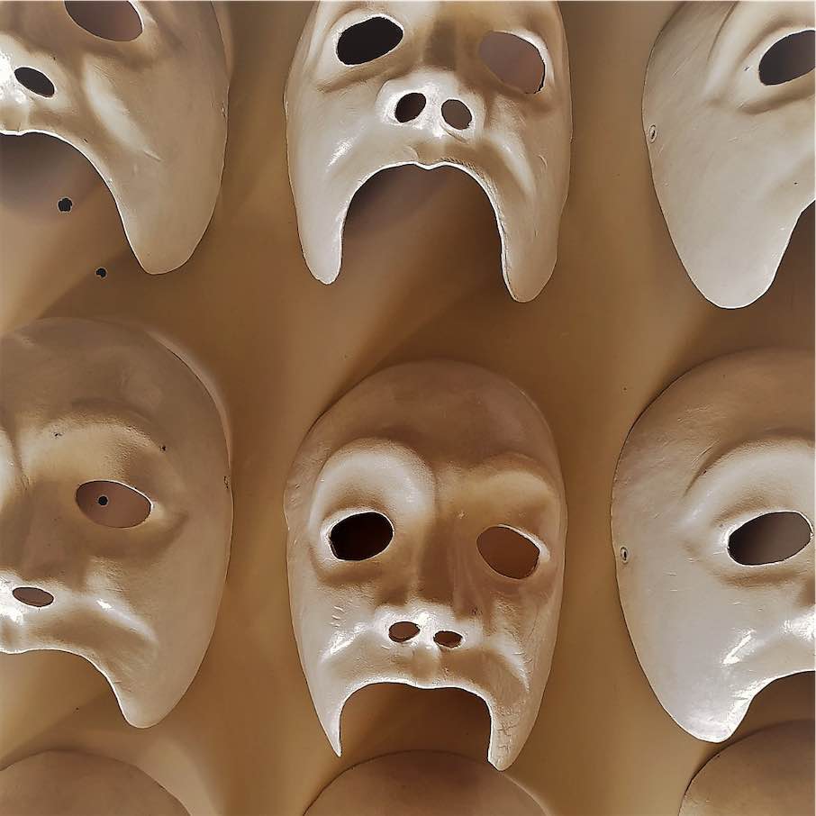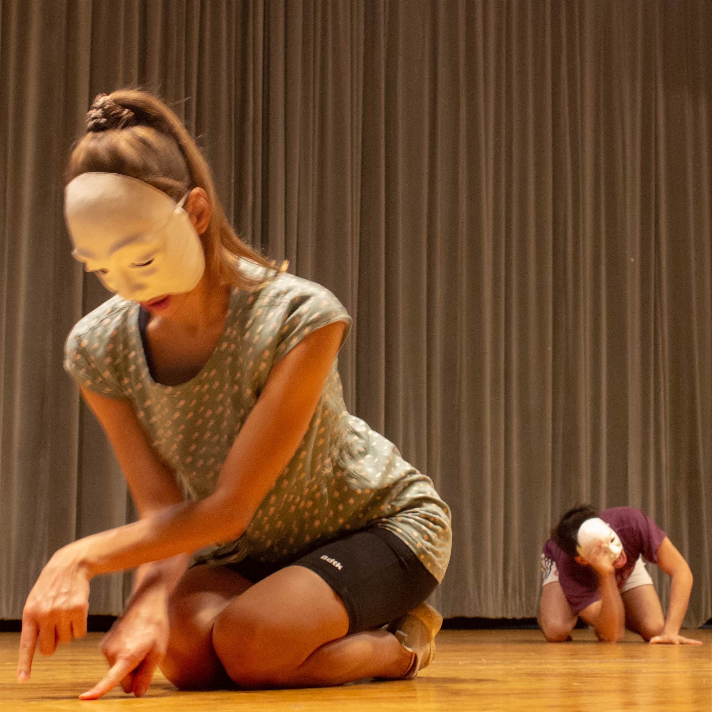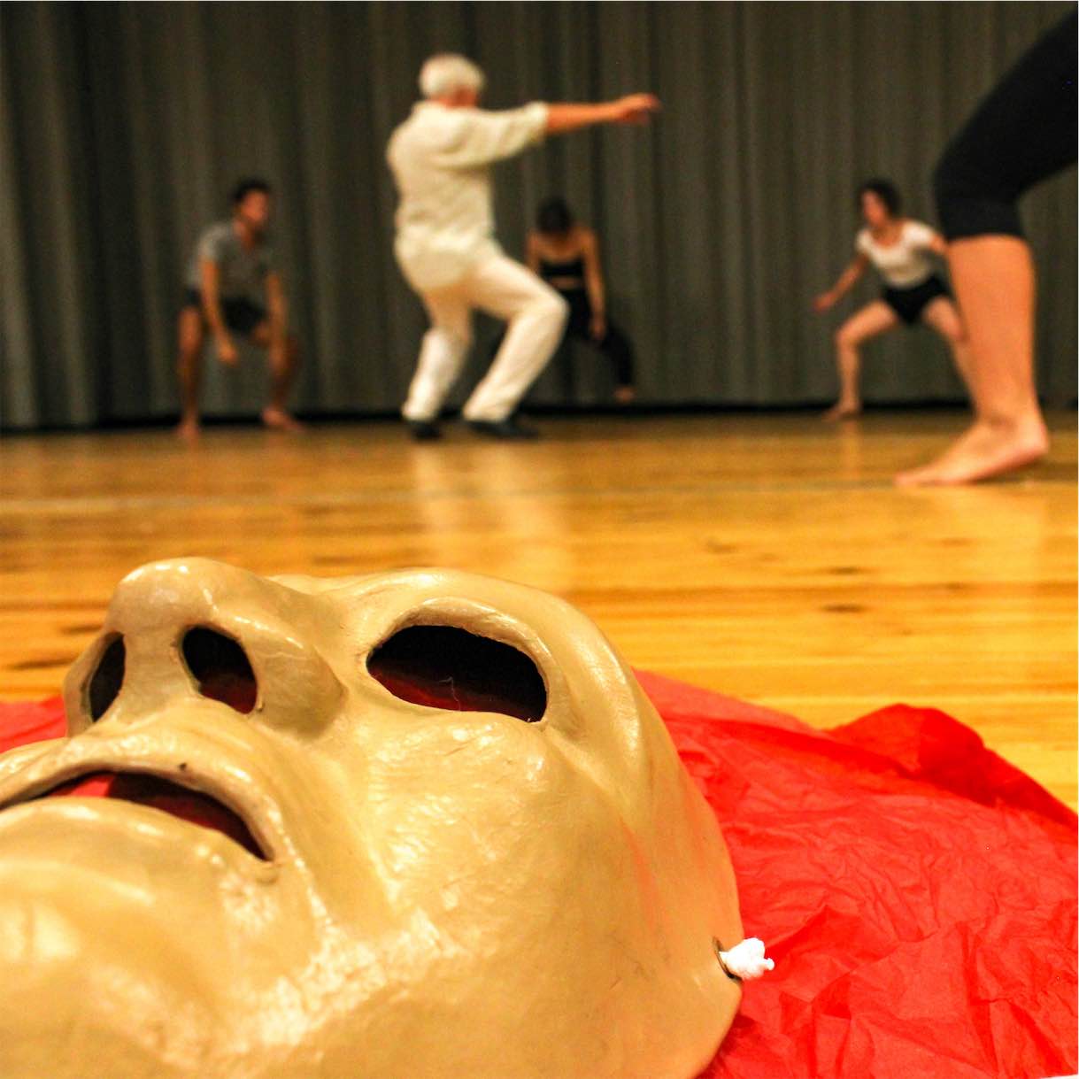 The photographic images of groups of actors in neutral masks are taken by the Kalamata Photography Association.