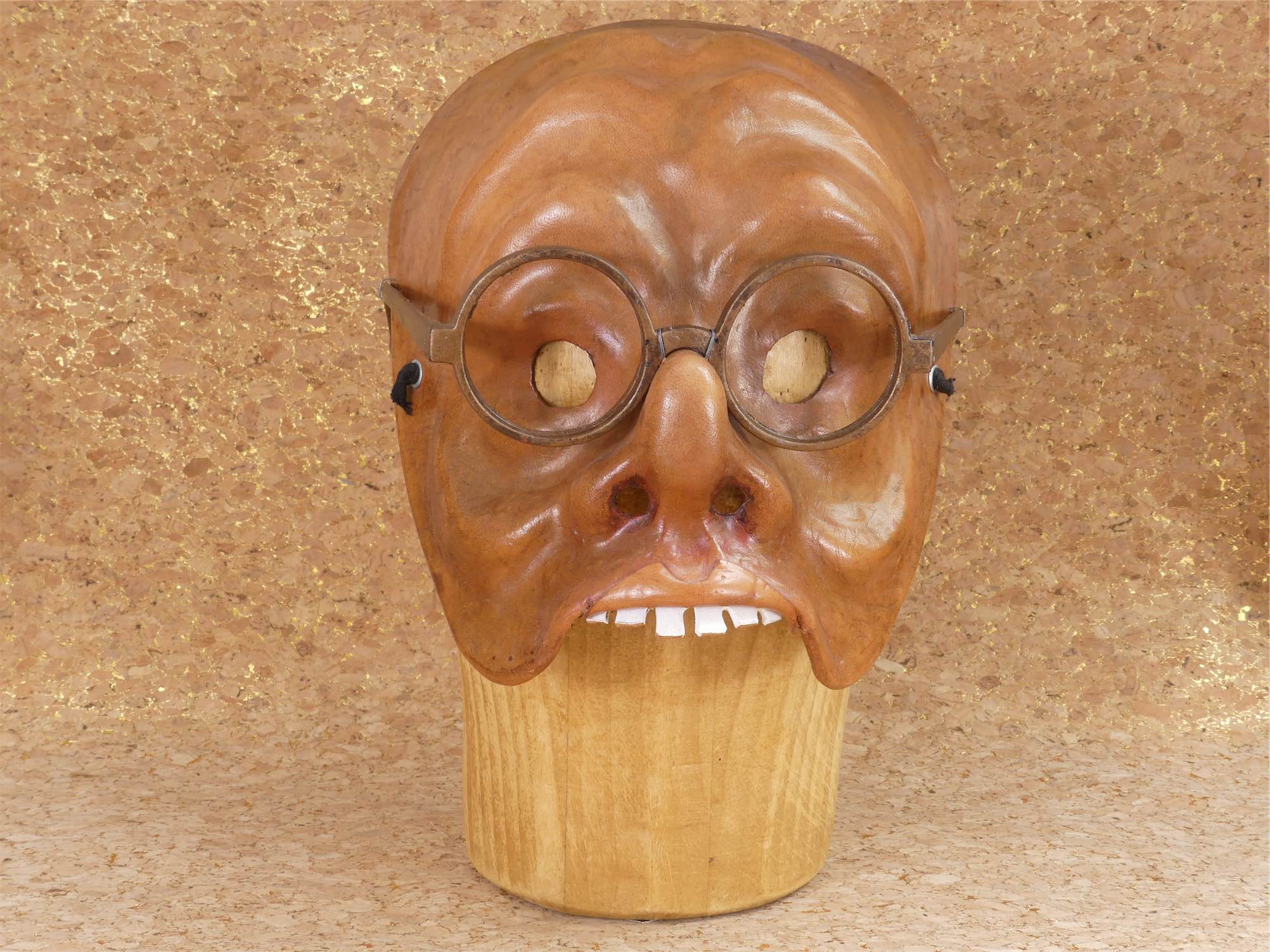 Tartaglia is Italian for Stutterer. He's short sighted hence the glasses, and appears in many scenarios, often as an unsuccessful lover. He's sometimes a Chemist, a bailiff or even a lawyer but more often appears as a salesman. Click on a mask to get an order form.